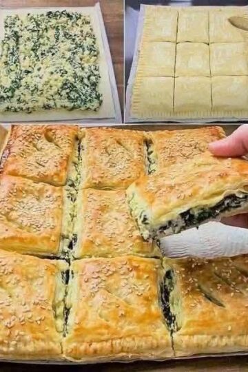 Ingredientes: 1 lámina de hojaldre (comprada o casera) 200g de espinacas frescas (o congeladas, descongeladas y escurridas) 100g de queso ricotta (o queso crema) 50g de queso rallado (Parmesano, Gruyère o Feta) 1 diente de ajo, picado 1 huevo (para pincelar) Sal y pimienta al gusto Una pizca de nuez moscada (opcional) Preparación: Preparar el […]