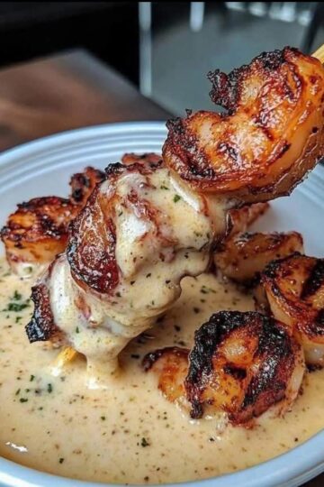 Brochetas de Camarones a la Parrilla con Salsa de Mantequilla de Ajo